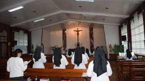 Browsing through and gleaning from the annals of our history, we realized that as the Sisters of our Manila Priory grew in number, the convent in Baguio became not just a home for our elderly Sisters and a favoured vacation place during the summer months but also the venue for retreats and conferences. Because of this, Sister Assumpta Filser,OSB, the Prioress in the 1960's initiated the construction of a building with enough rooms to accommodate the Sisters for various purposes. Unfortunately, the strong earthquake of 1990 destroyed this building. The present structure of St. Scholastica's Convent that was built after the earthquake provided our aging and sick Sisters that time with better facilities befitting their health condition.